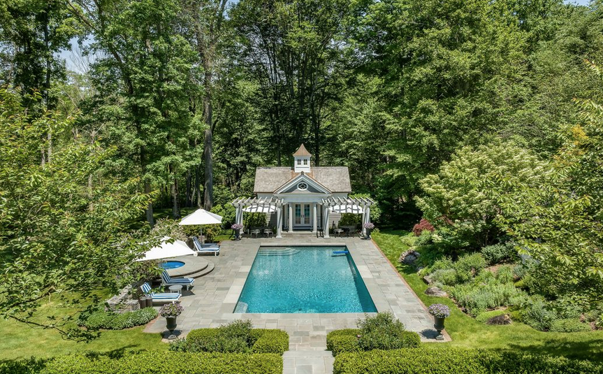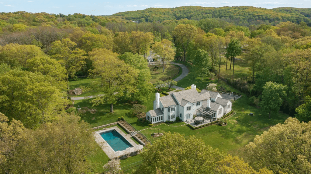 Here, we have an imposing house, reimagined by an acclaimed architect and set in 7 acres of outstandingly beautiful landscaped gardens, with private access to the one hundred miles of exclusive Bedford Riding and Walking Trails. The property is on a no-through road, so seclusion and peace from traffic are guaranteed. Plus there is an Amish-built, two-to-three-horse stable and paddocks.