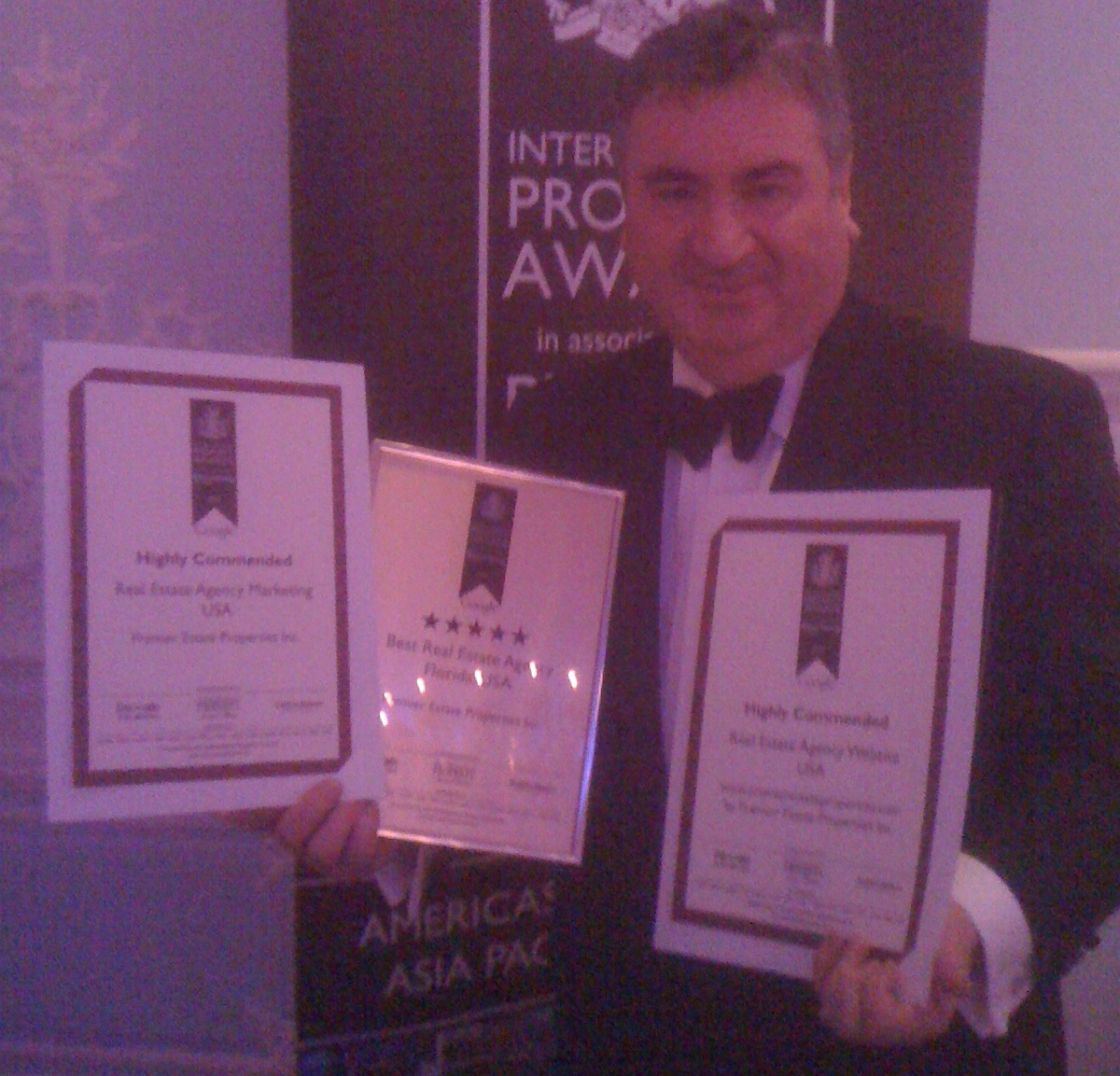 Now their outstanding reputation has been further enhanced in the most internationally visible way possible as they have been given three most prestigious awards, Best Real Estate Agency, Florida; Highly Commended – Real Estate Agency marketing – USA; and Highly Commended Real Estate Agency Website – USA.