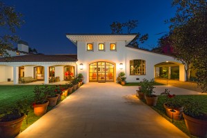 Outside are lush and landscaped grounds, the tennis court and inner courtyard. Here then is the antidote to super-herodom. A place to relax and recharge. It’s not far from the studios or from friends in the business. But forgetting all that for a moment this is simply a lovely house. It is grounded. It is not over the top, glitzy or very show biz for that. It is a comfortable, elegant house that anyone would be delighted to call home.